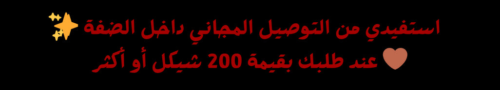 تسوقي براحة وأمان من موقعنا ❤️ 📍 بنوصل لكل مدن وقرى الضفة، القدس، والداخل عن طريق شركات توصيل موثوقة. 🚚 التوصيل خلال 1-3 أيام عمل فقط! 💰 الدفع عند الاستلام 🔁 إمكانية التبديل بكل سهولة خلال 24 ساعة فقط ⚠️...